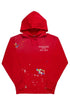 An organic cotton hoodie for men in red. Designed with a worn-in finish and custom splatter paint for the perfect vintage-inspired staple piece.